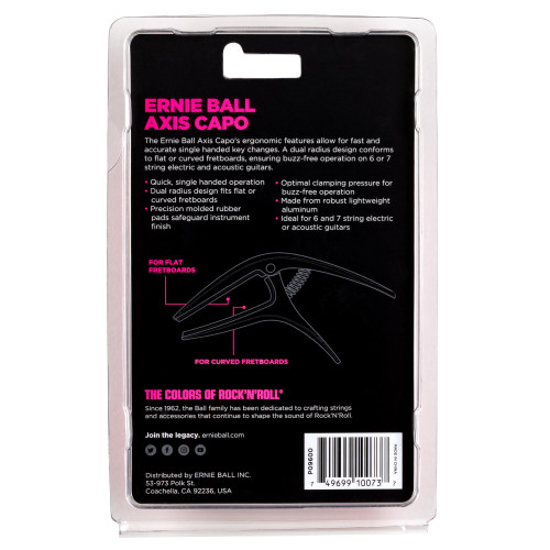 Каподастр Ernie Ball 9600 серии Axis имеет эргономичный дизайн и позволяет быстро и точно менять тональность инструмента касанием одной руки.