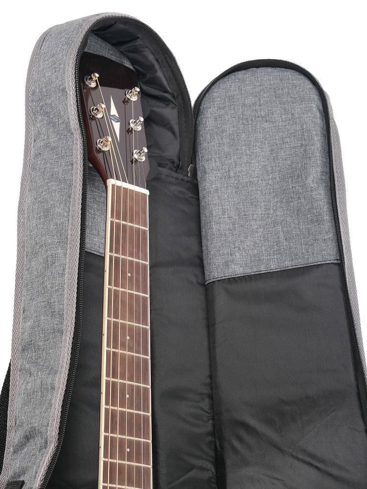 Укреплен жесткой тканью в области головы грифа для защиты от острых концов струн.